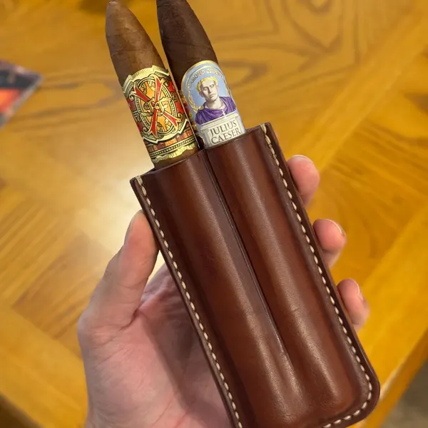Crafted from premium bridle leather by Wickett & Craig, this handstitched cigar caddy effortlessly blends heritage craftsmanship with modern elegance. Designed specifically to secure your favorite Robusto-sized cigars, it offers durability, protection, and timeless sophistication wherever your journey takes you.